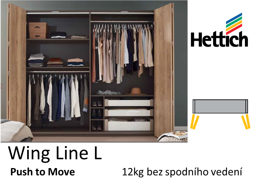 K-HETTICH WingLine L Push to Move 12 kg bez dolního vedení, lehké dv. 2400 mm L+
