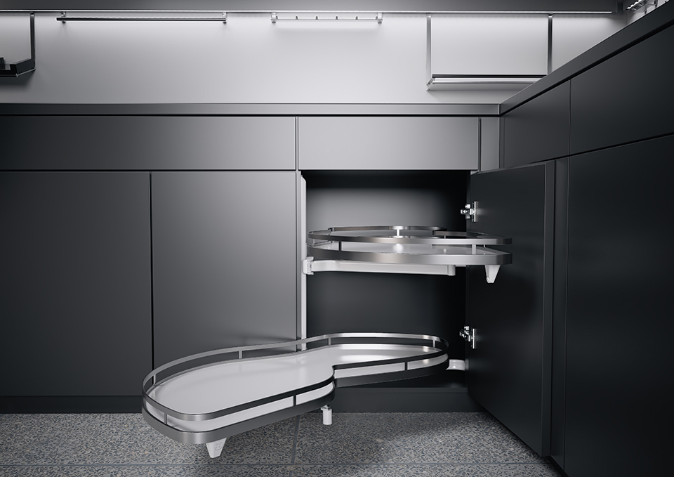 Díky speciálně tvarované geometrii polic zvětšuje skutečnou úložnou plochu až o 70 %. Jasná výhoda oproti srovnatelným výsuvným skříním. Pokud je LeMans II vybaven tlumeným mechanismem, který je k dispozici jako příplatková výbava, je pohyb polic téměř bezhlučný. Tento optimální komfort lze kdykoliv snadno a rychle dovybavit.