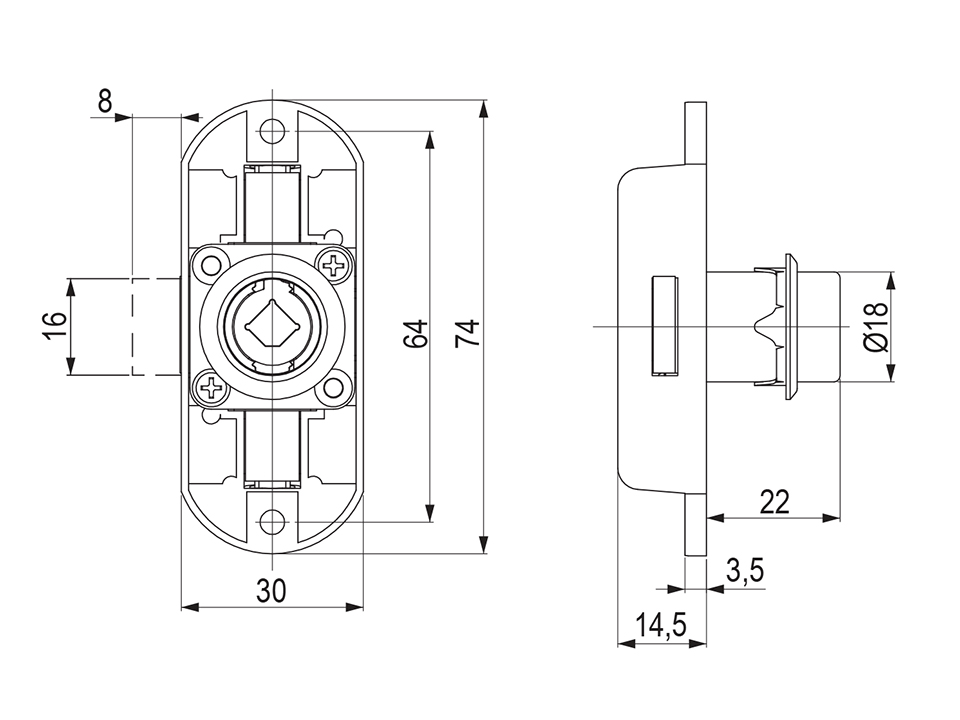 STRONG Zámek trojcestný pro vyměnitelnou vložku, pravý