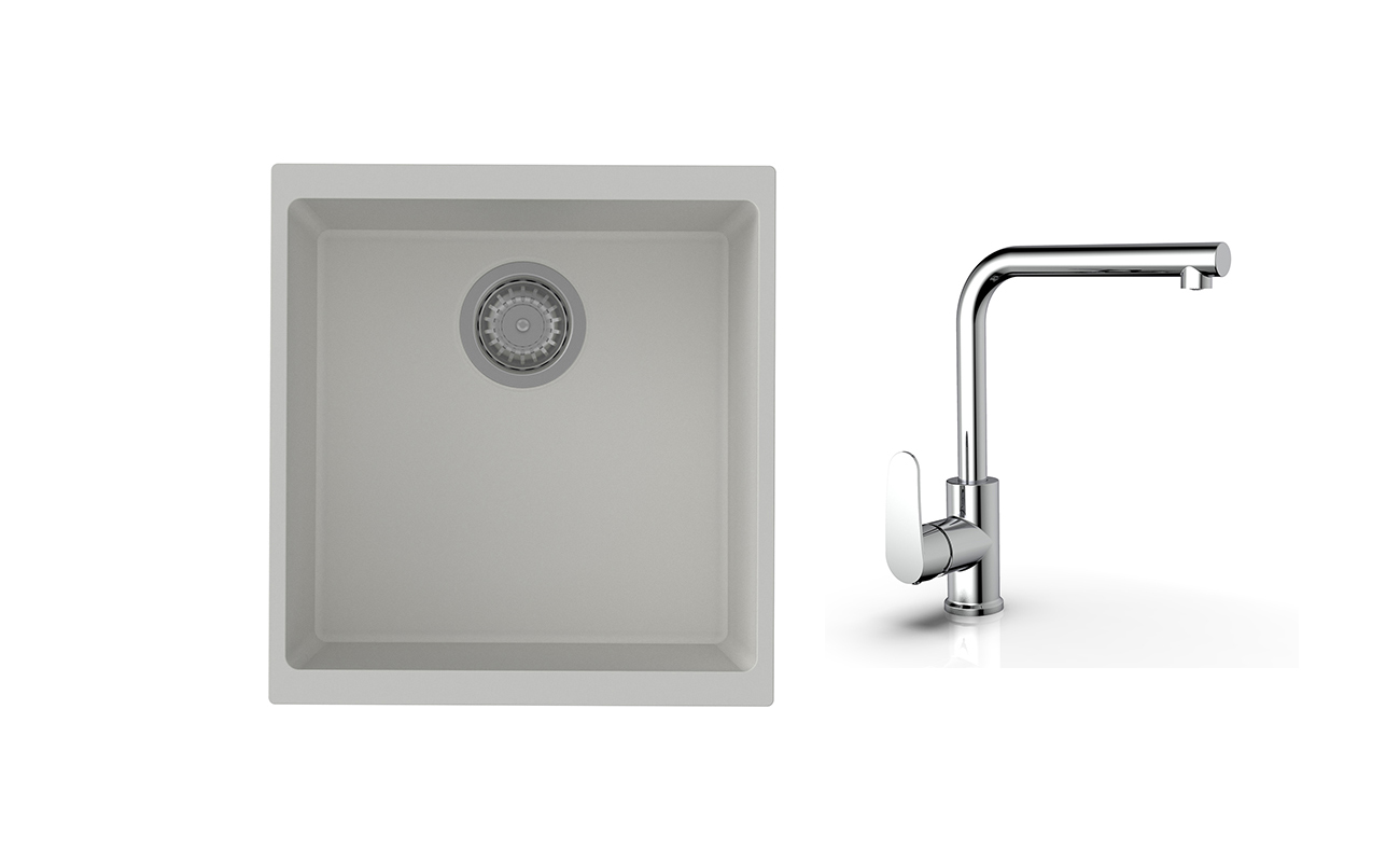 Praktický a cenově zvýhodněný set granitového dřezu a baterie v jednom.