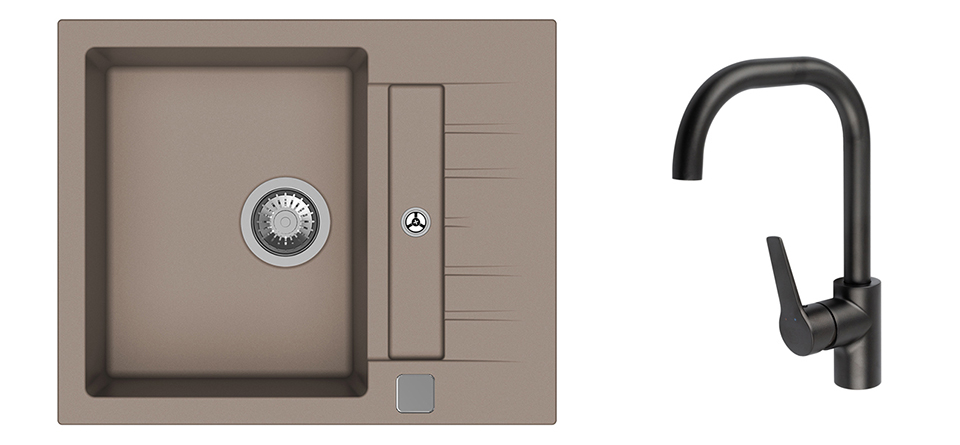 K-StrongSinks S3 Set dřez Vardar 615x500mm granit béžová + Bater. Garonne černá
