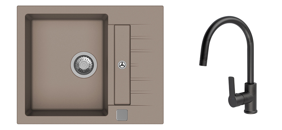 K-StrongSinks S3 Set dřez Vardar 615x500mm granit béžová + Baterie Loira černá