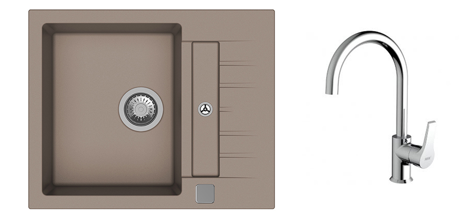 K-StrongSinks S3 Set dřez Vardar 615x500mm granit béžová + Baterie Rhona chrom