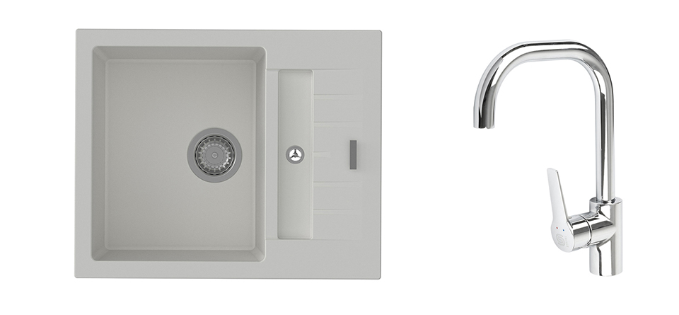 K-StrongSinks S3 Set dřez Vardar 615x500mm granit bílá + Baterie Garonne chrom