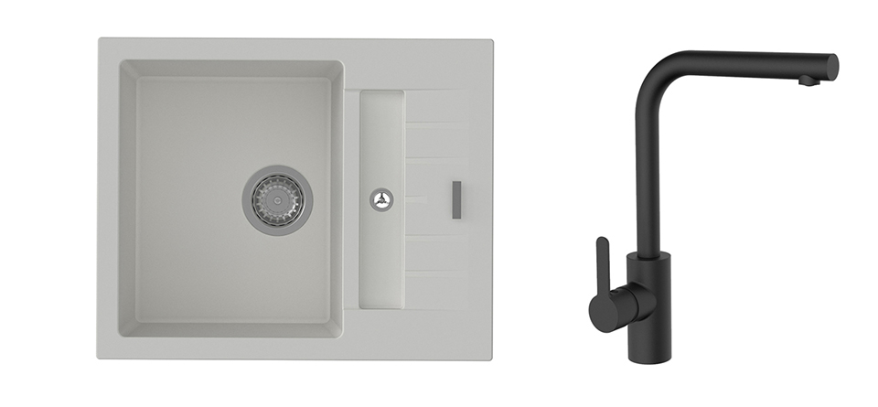 K-StrongSinks S3 Set dřez Vardar 615x500mm granit bílá + Baterie Ipoly černá