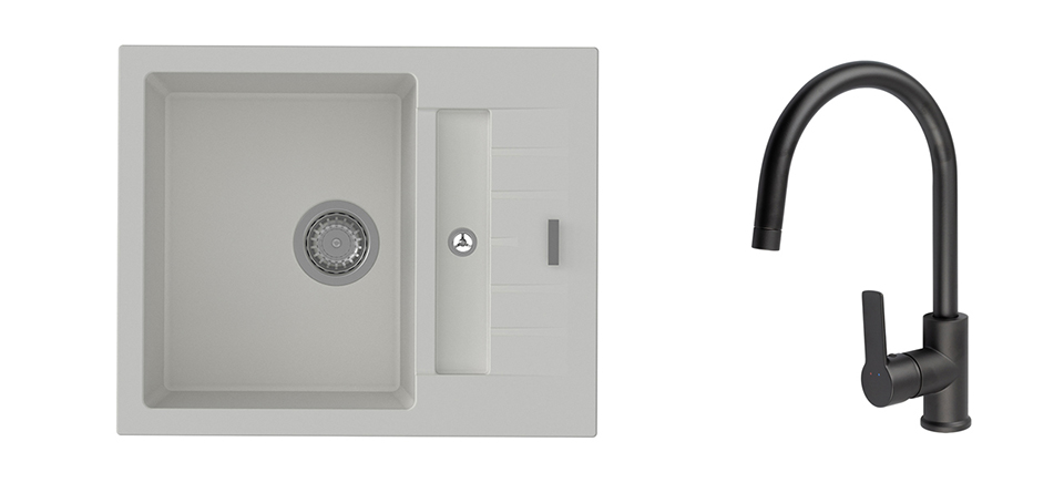K-StrongSinks S3 Set dřez Vardar 615x500mm granit bílá + Baterie Loira černá