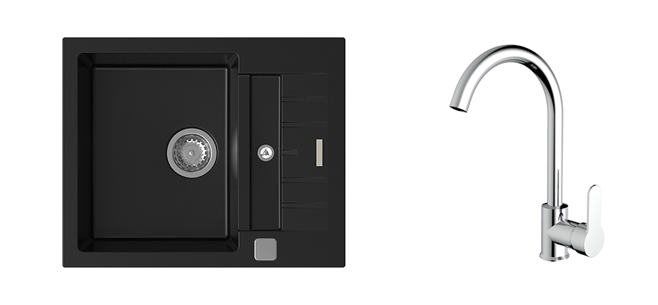 K-StrongSinks S3 Set dřez Vardar 615x500mm granit černá + Baterie Seina chrom