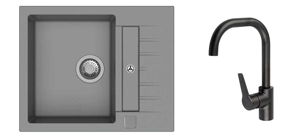 K-StrongSinks S3 Set dřez Vardar 615x500mm granit šedá + Baterie Garonne černá