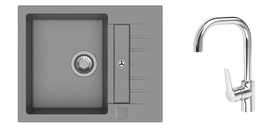 K-StrongSinks S3 Set dřez Vardar 615x500mm granit šedá + Baterie Garonne chrom