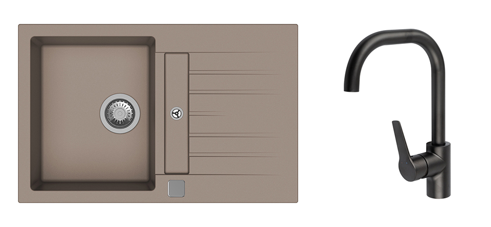 K-StrongSinks S3 Set dřez Vardar 780x500mm granit béžová + Bater. Garonne černá