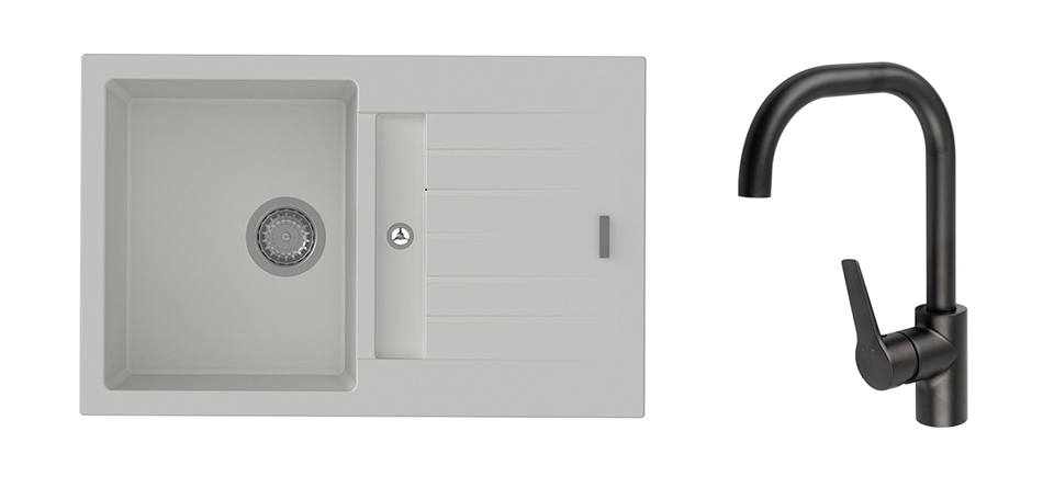 K-StrongSinks S3 Set dřez Vardar 780x500mm granit bílá + Baterie Garonne černá