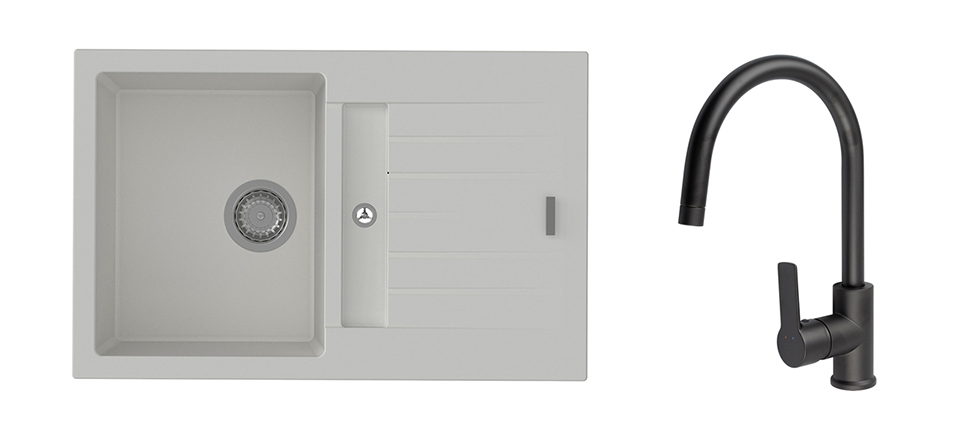 K-StrongSinks S3 Set dřez Vardar 780x500mm granit bílá + Baterie Loira černá