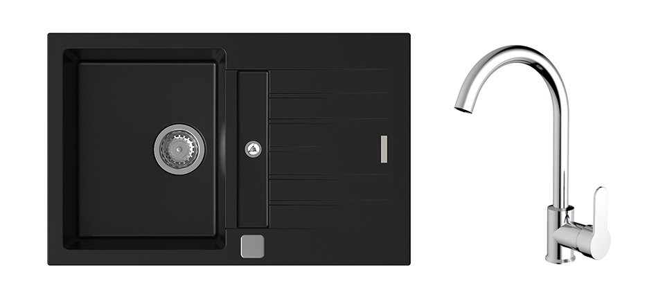 K-StrongSinks S3 Set dřez Vardar 780x500mm granit černá + Baterie Seina chrom