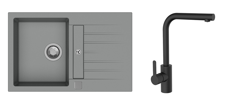 K-StrongSinks S3 Set dřez Vardar 780x500mm granit šedá + Baterie Ipoly černá