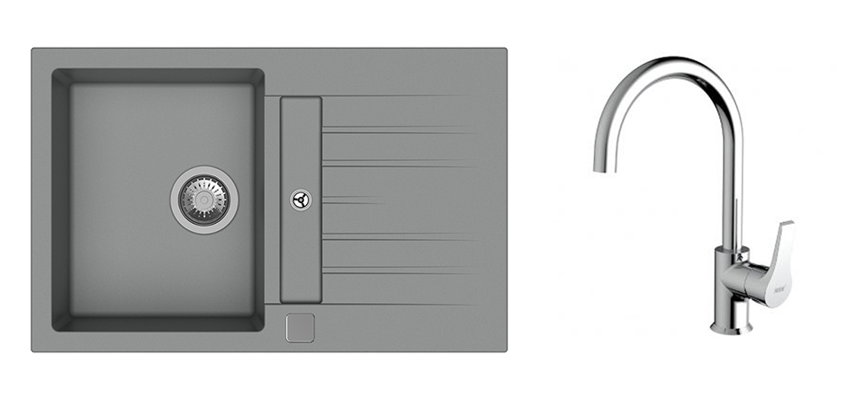 K-StrongSinks S3 Set dřez Vardar 780x500mm granit šedá + Baterie Rhona chrom