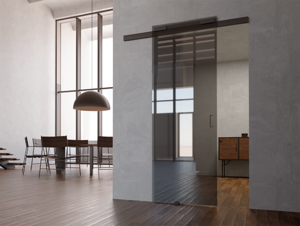 Sada kování pro skleněné dveře s kapalinovými tlumiči. Pro 1 křídlo včetně horního vedení v délce 2m. Povrchová úprava - elox černý. Pro dveře o nosnosti 30 - 80kg a šířky 600 - 1000mm.