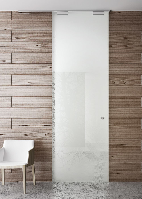 Kompletní sada kování pro posuvné skleněné interiérové dveře s kapalinovými tlumiči. Maximální hmotnost křídla je 80 kg, minimální šířka křídla je 740 mm. Pro tloušťku skla 10 - 10,7 mm.