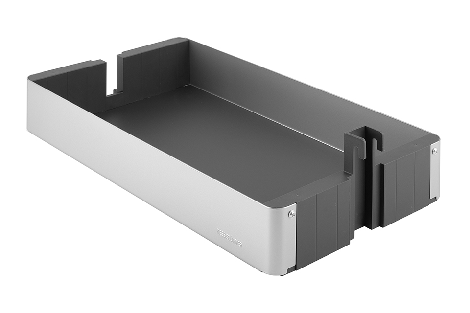 Koš pro potravinovou skříň Dispensa / Dispensa Junior Slim / Dispensa Junior III. Provedení K-Line. Plné stříbrné bočnice. Stříbrné dno s antracitovou Anti-slip nesmekovou podložkou. Pro šířku korpusu 300 mm.