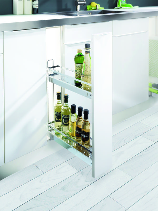 Kesseböhmer dvojkoš pro korpus 150mm, s tlumeným výsuvem, v designu Arena Classic - chrom. Pravá varianta. Nosnost max. 12 kg.