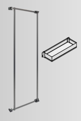 Dělený úložný prostor – přední + zadní police – pro lepší přehled a větší transparentnost. Přední (dveřní) police se otvírají s dvířky. Zadní police se automaticky vysouvají dopředu. Stejný rám pro levou i pravou instalaci – zjednodušuje plánování – nezávisle na výšce skříně. Sada včetně čtyř košů.