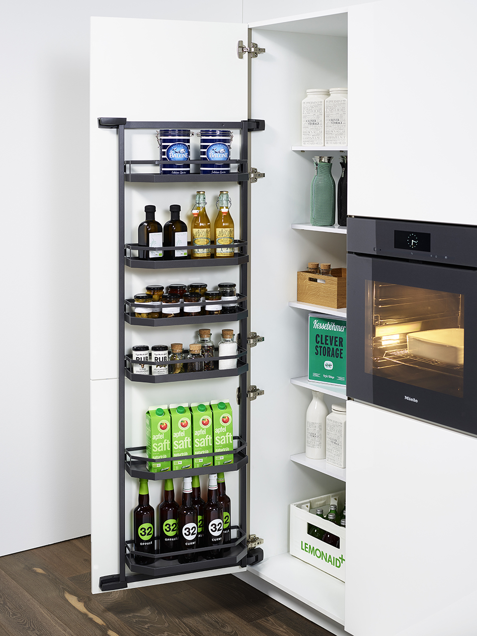 Chytrý výrobek: Že jsou obecně výrobky Kesseböhmer chytrými výrobky je zřejmé. Promyšlené s přidanou hodnotou. My řadíme speciálně antracitové řešení mezi opravdu chytré řešení. V nábytku nenápadné a přesto elegantní. Lze ho snadno doladit k ostatnímu trendy tmavému kování (výsuvy, závěsy...) a je atraktivní barevnou kombinací k většině plošných materiálů.