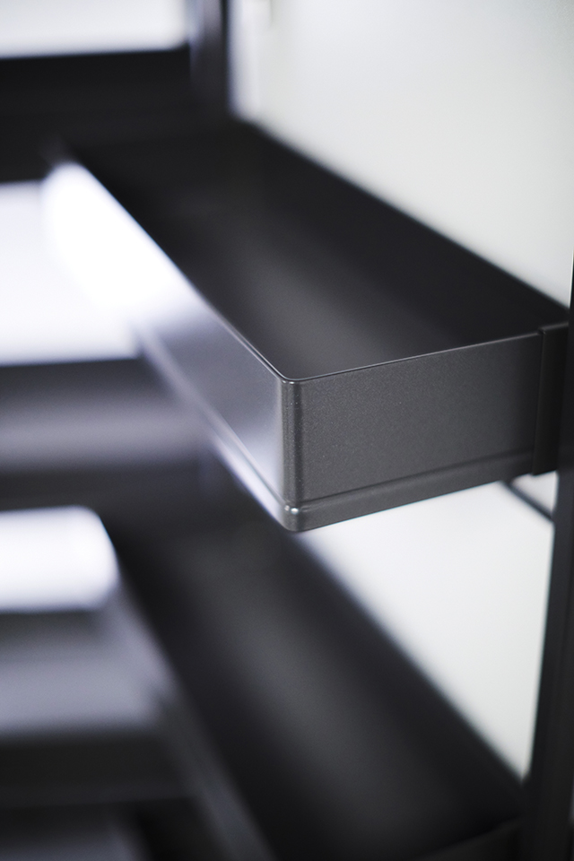 Chytrý výrobek: Že jsou obecně výrobky Kesseböhmer chytrými výrobky je zřejmé. Promyšlené s přidanou hodnotou. My řadíme speciálně antracitové řešení mezi opravdu chytré řešení. V nábytku nenápadné a přesto elegantní. Lze ho snadno doladit k ostatnímu trendy tmavému kování (výsuvy, závěsy...) a je atraktivní barevnou kombinací k většině plošných materiálů.