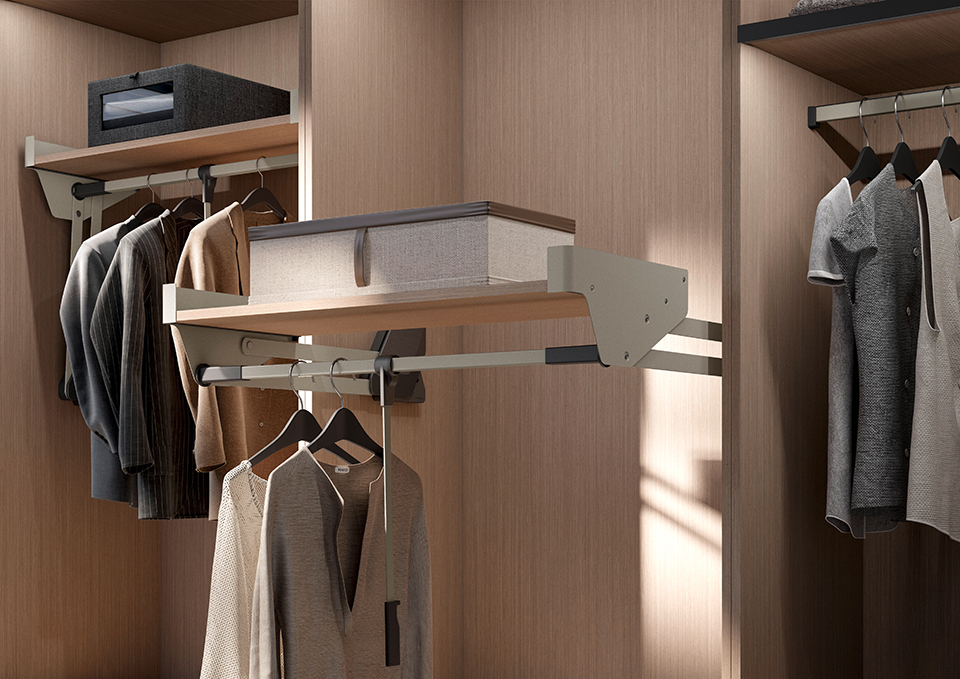 KES Conero, sklopná šatní tyč s policí, LW 635-828mm, 18kg, champagne gold