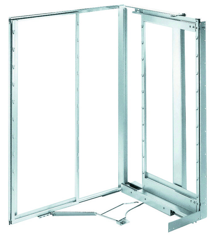 Mechanismus pro řešení spodní rohové skříňky (tzv.slepého rohu). Levá varianta = mechanismus se otvírá doleva. Pro korpus o šířce 900-1000mm. Rozměry korpusu: šířka:860-971, hloubka: 485, výška: 525mm. Dvířka min. 450mm. Nosnost polic: přední 14kg, zadní 18kg. Sady košů: Arena STYLE - 135869, Arena CLASSIC - 135916, celodrátěné - 135870.