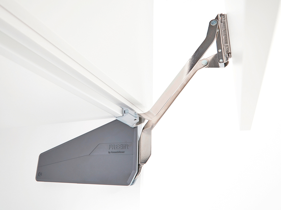 Výklopné kování svisle s korpusem. Výška 430-600mm. Váha čela 7,4 - 14,6kg.