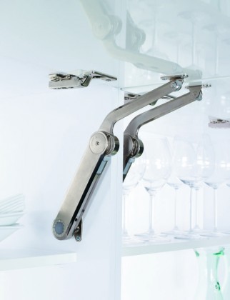 Polohovatelná klopna Kesseböhmer MAXI. Úhel otevření 75, 90 a 110°. Možno pro horní vyklápění dvířek. Nutno doobjednat uchycení dveři a korpusu.