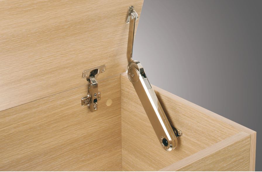 Kování pro tlumení dovírání vík, poklopů truhel, botníků nebo peřináčů. Úhel otevření je 75°. Nejlépe kombinovat s tlumenými závěsy. Pro uchycení je potřeba dokoupit úchyt na dveře 135045 a úchyt na korpus 135044.