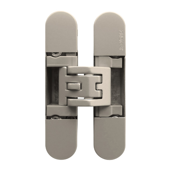 Závěs pro bezfalcové dveře s 3D seřízením . výškově a předozadně +/- 3mm, stranově +/- 1,5mm. Maximální nosnost dveří je 30 kg pro 2 kusy závěsů, 45 kg pro 3 závěsy. Minimální tloušťka dveří je 30 mm. Volitelné příslušenství jsou příchyty pro obložkové či ocelové zárubně. Montážní šablona 256045 (rám) + 268077 (vklady)