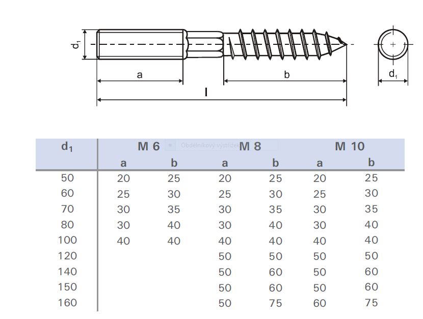 Kombinovaný šroub s 6H M8x50 zinek bílý T25