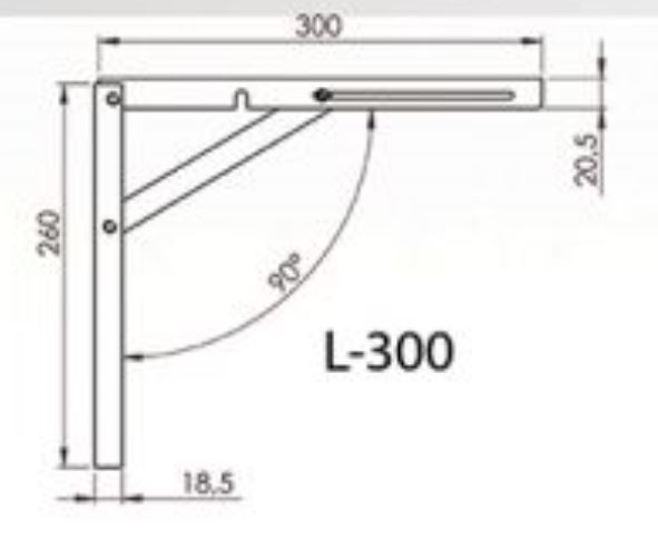 Sklopná konzole o délce ramena 30 cm v satinové barvě (komaxit). Nosnost 100 kg/pár.