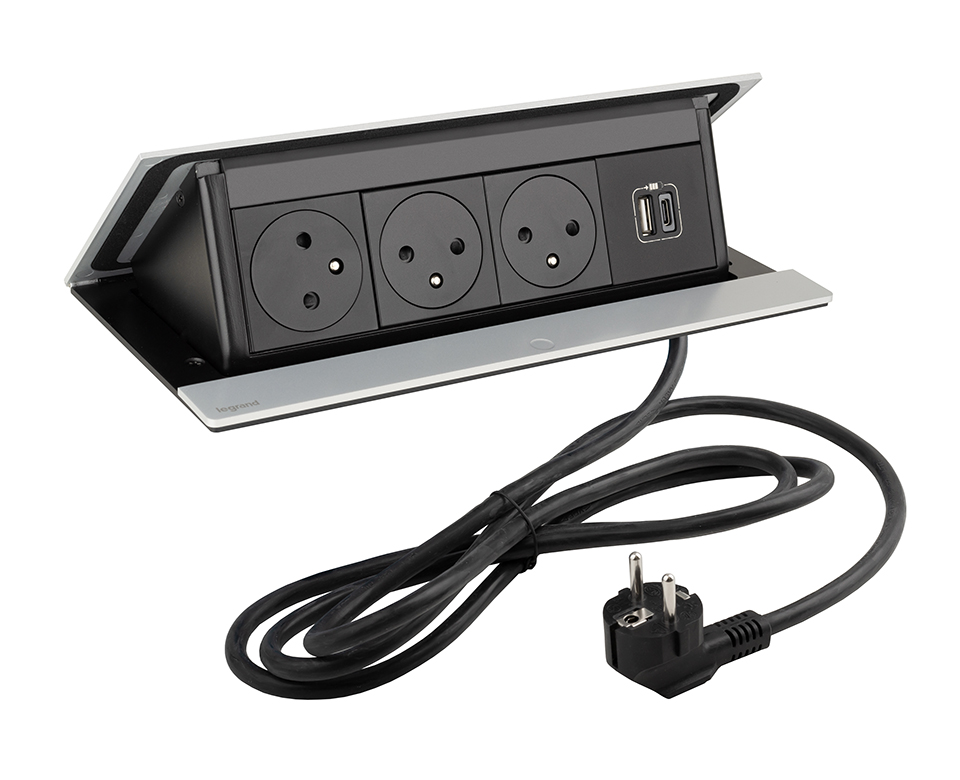 LEGRAND elektrická zásuvka PopUp, 3x 230V FR, 1x USB A+C, eloxovaný hliník