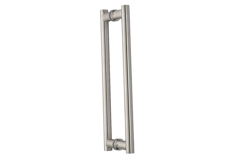 Nerezové madlo (pár) pro posuvné dveře. Sada obsahuje 2 madla , spojovací kování pro protilehlé spojení. Vrtání skla 12mm. Tloušťka madel = 19mm, výška 75mm, celková délka 300mm, rozteč vrtání 200mm V balení se spojovacími šrouby.. Madlo lze použít až pro 50 mm tloušťku materiálu. Při větší tloušťce zakoupit delší šrouby.