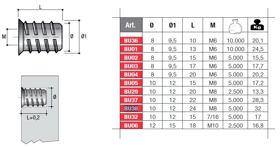 Průměr: 10 mm L = 24 mm M = M8 Balení: 5 000 ks