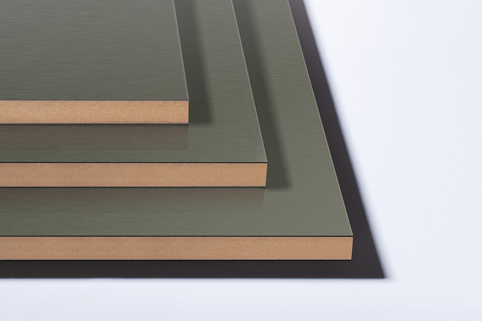 MDF Desky s kovolaminátem jsou oboustranně potažené desky reálným hliníkovým plechem s povrchem odolným proti poškrábání a pokrytým ochrannou fólií. Jsou určené do suchého prostředí pro nenosné účely.