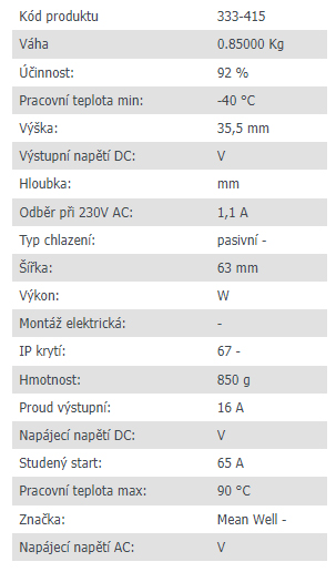 Pracovní teplota: -40..90°C. Hmotnost: 0,85kg.