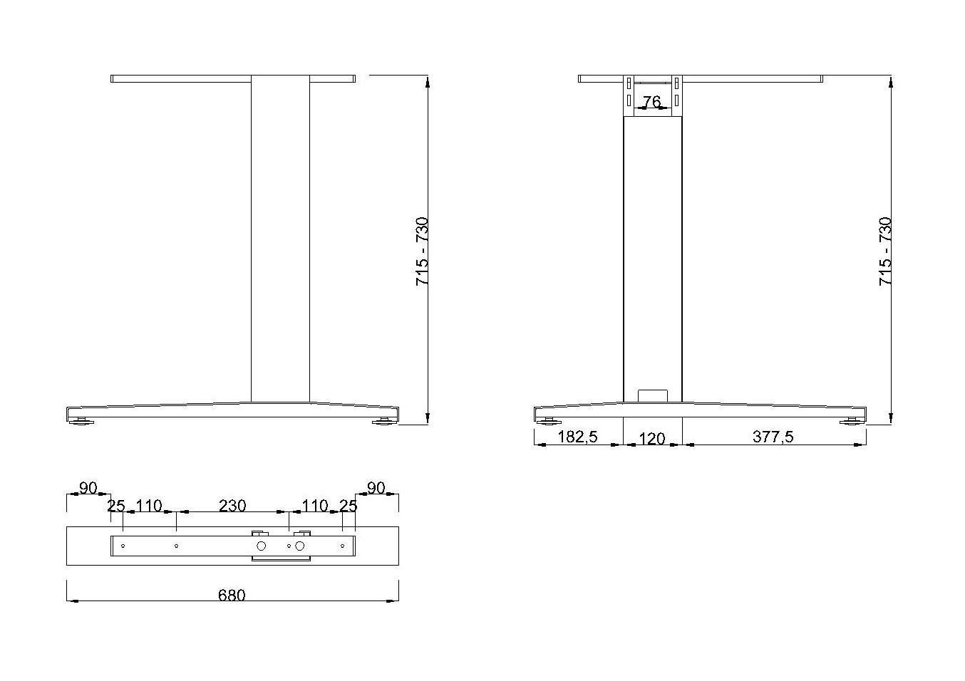 Podnož stolu krajní (základna se skosenými konci o šířce 80 mm), boční výplně součástí