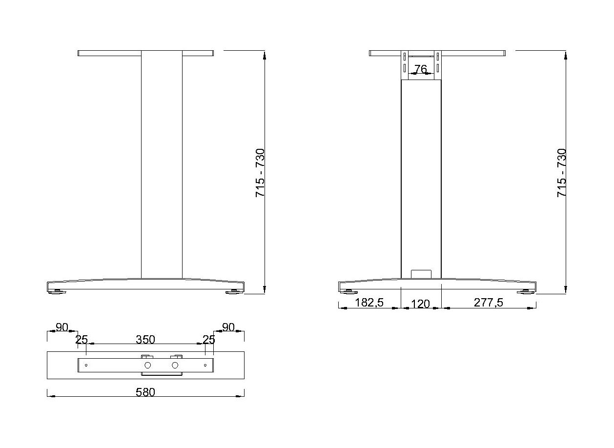 Podnož stolu krajní (základna se skosenými konci o šířce 80 mm), boční výplně součástí
