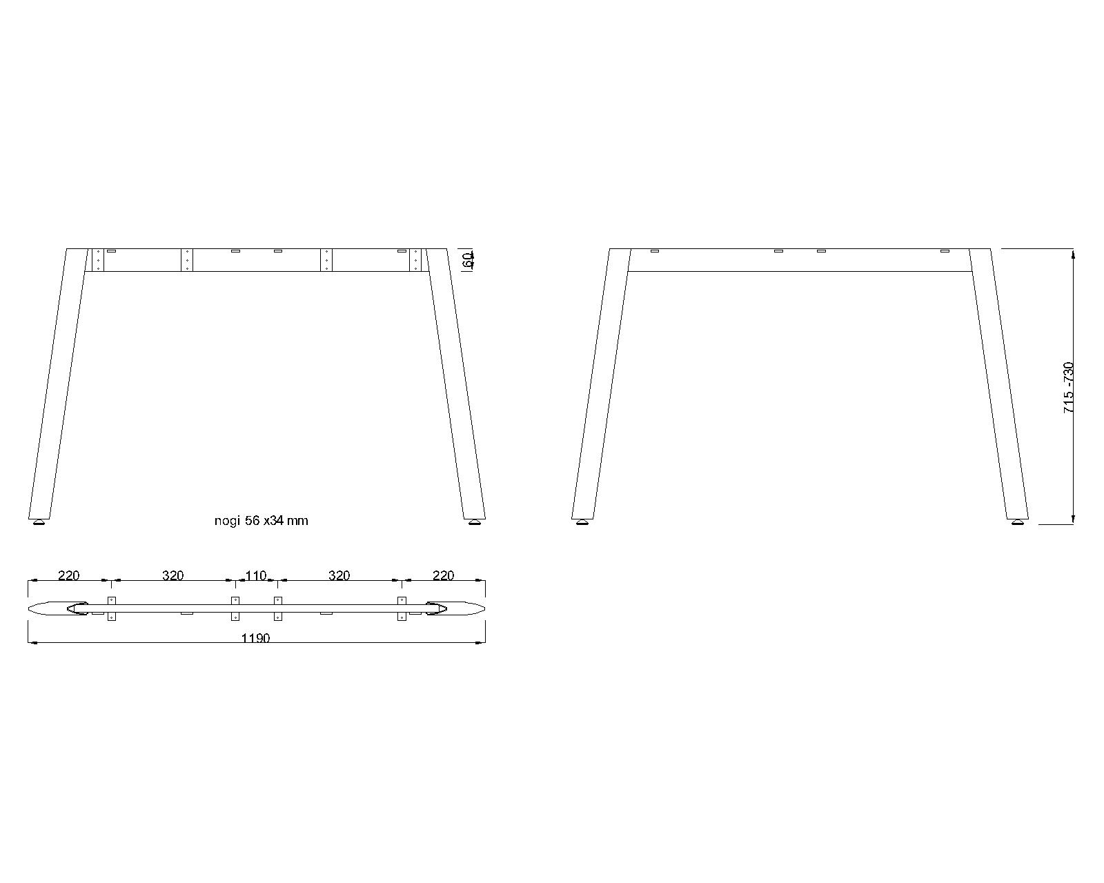 Podnož stolu dvojitá zkosená (profil nohy trojúhelníkový 56x34 mm)
