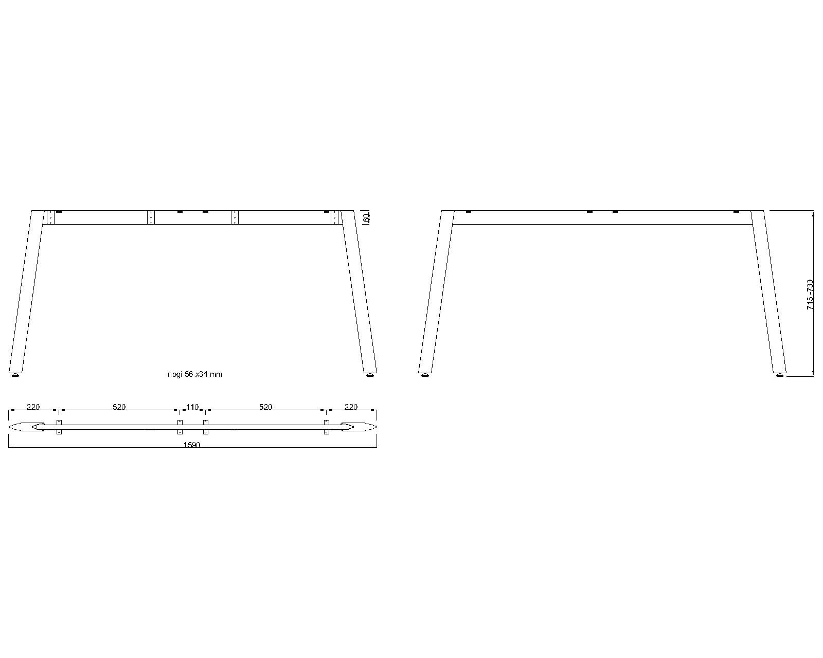 Podnož stolu dvojitá zkosená (profil nohy trojúhelníkový 56x34 mm)