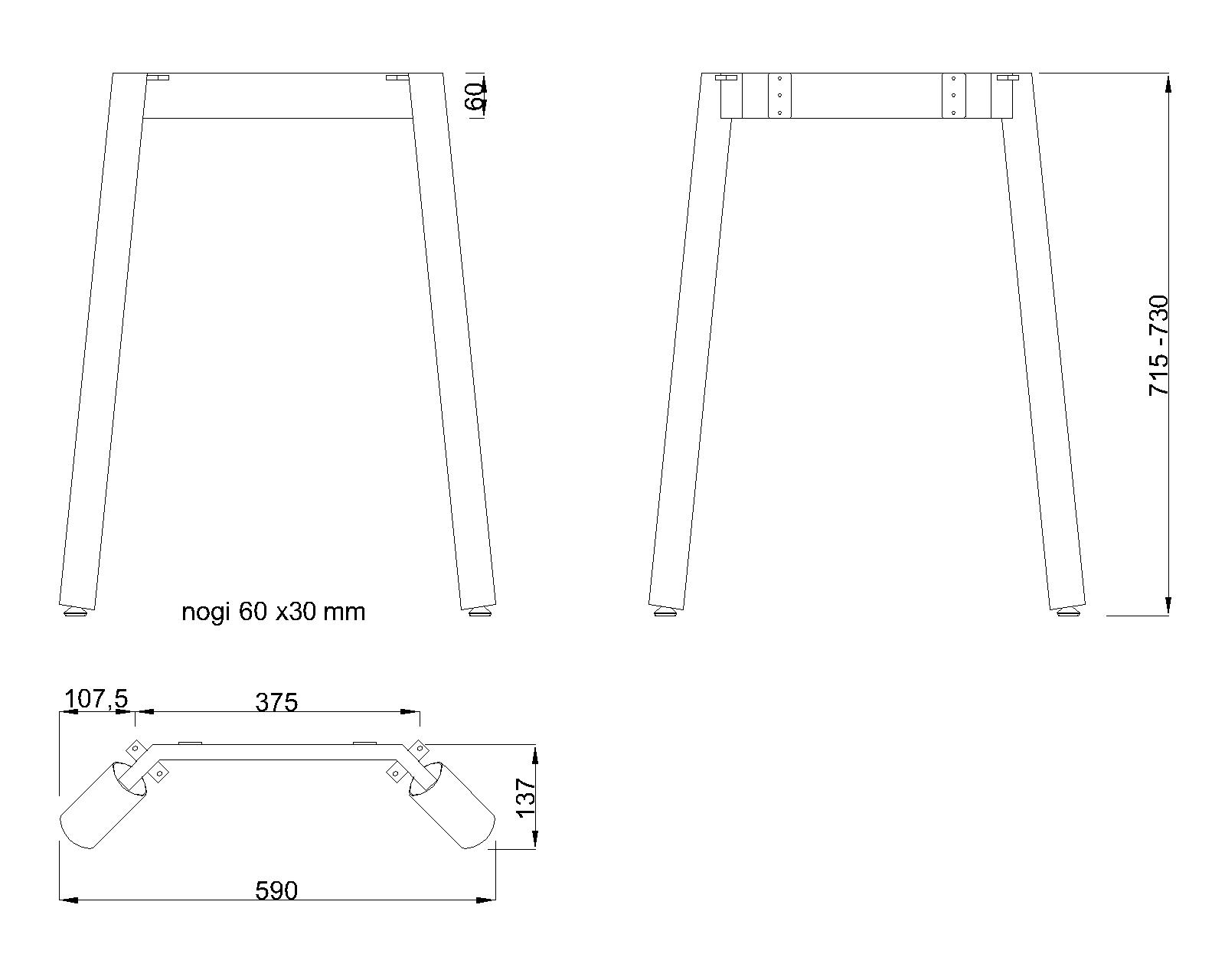 Podnož stolu skosená lomená (profil nohy eliptická 60x30 mm)