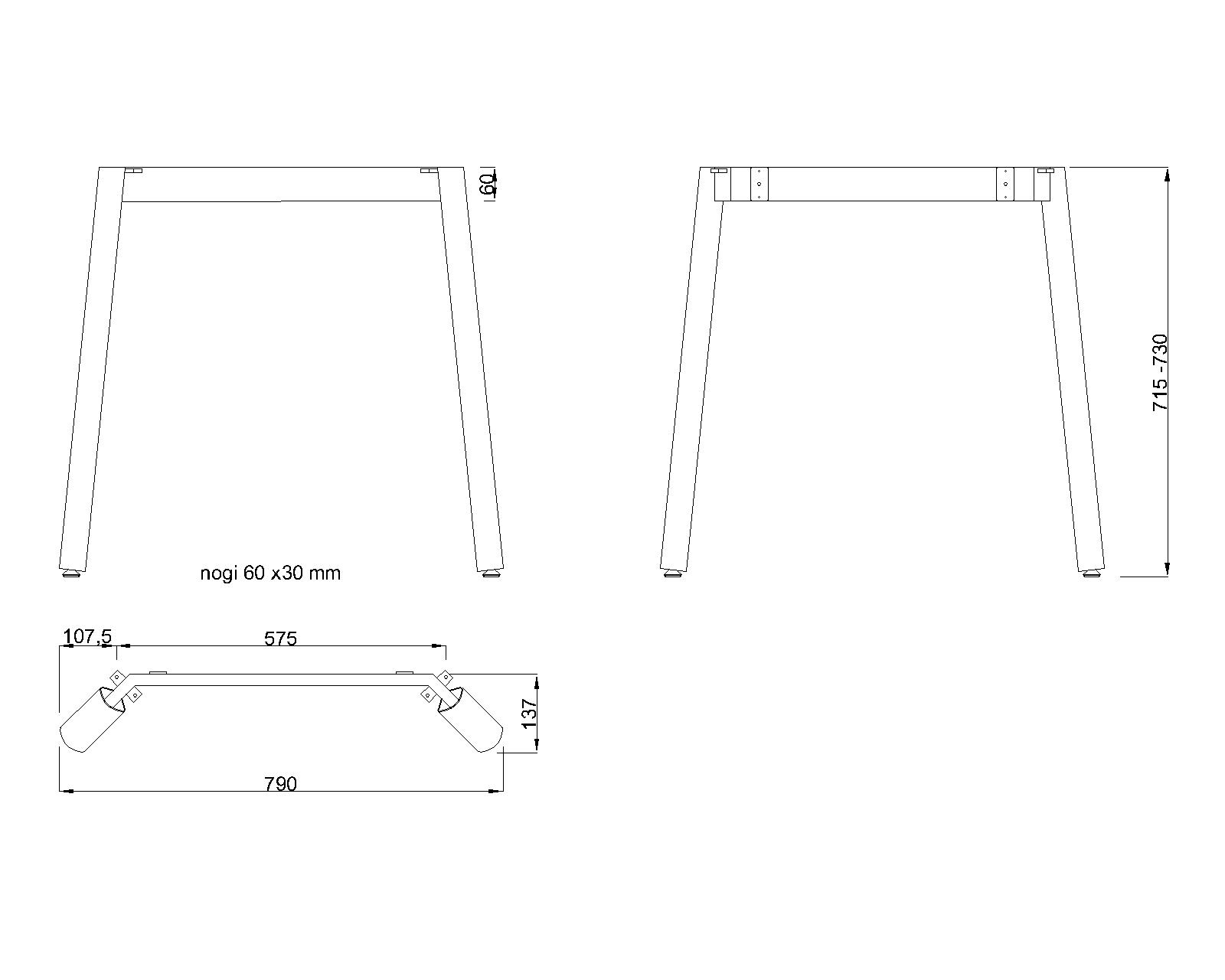 Podnož stolu skosená lomená (profil nohy eliptická 60x30 mm)