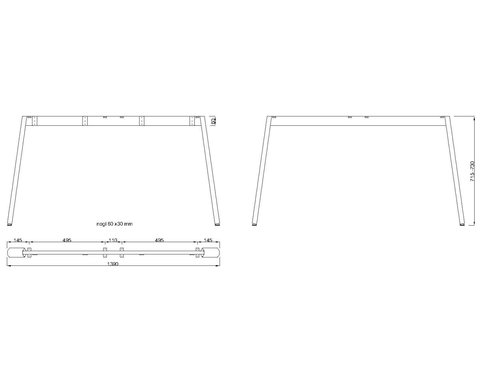 Podnož stolu dvojitá zkosená (profil nohy eliptická 60x30 mm)