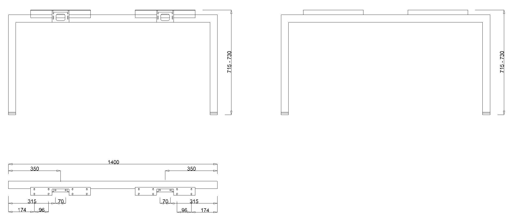 Rozměry: 1400x715–730H