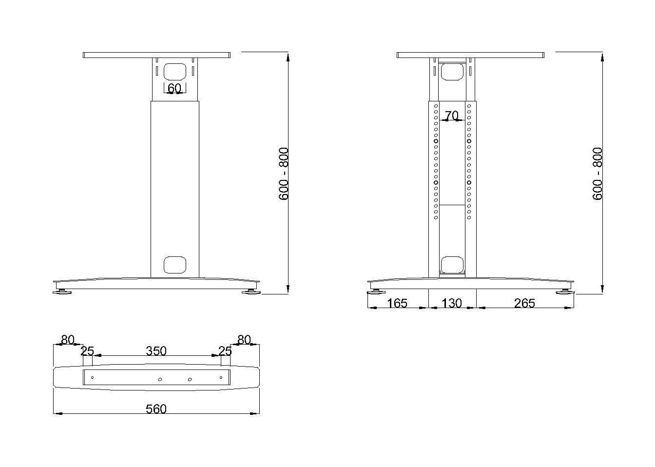 Podnož stolu výš.stavitelná krajní (základna o šířce 75 mm)