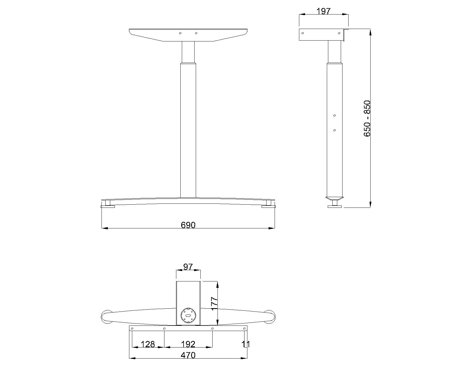 Podnož stolu výš.stavitelná středová (základna o šířce 70 mm, noha prům. 50 / prům. 60)