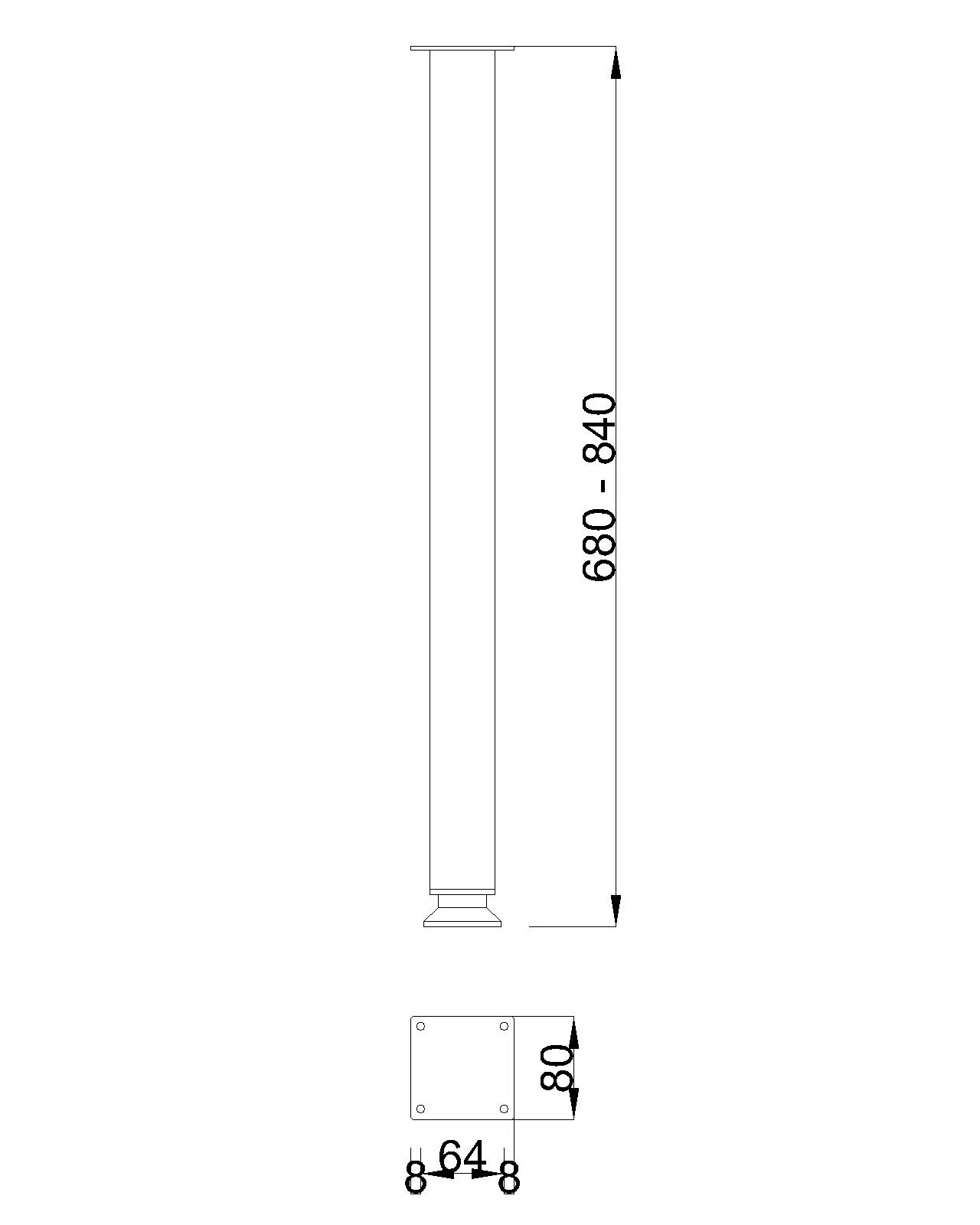 Rozměry: 50x50x680–840H